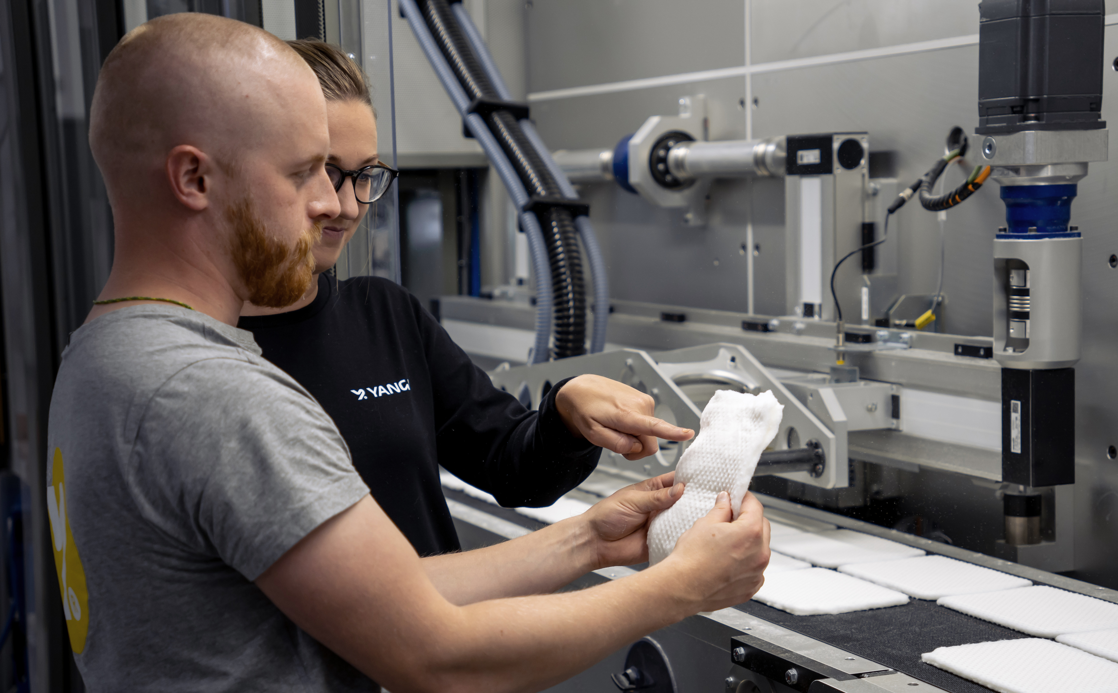 Yangis teknik bygger på en diskret produktionslogik där varje formad fiberkudde, en så kallad pad, hanteras som en individuell enhet. Det gör det möjligt att producera flera olika produkter parallellt i samma maskinlinje, till exempel lock och tråg med olika dimensioner och egenskaper.
